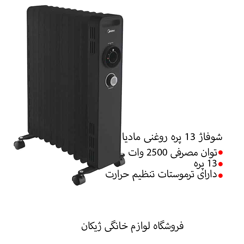 شوفاژ برقی ۱۳ پره میدیا مدل NY2513-20M – گرمایش یکنواخت و بیصدا برای فصول سرد