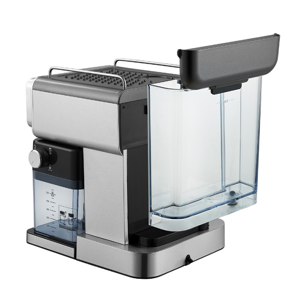 ابعاد متعادل دستگاه باعث میشود فضای زیادی اشغال نکند و بهراحتی روی کانتر آشپزخانه یا میز کار قرار گیرد. طراحی ارگونومیک دکمهها و ولومها نیز استفاده روزمره را ساده و لذتبخش میکند. مخزن آب 1.6 لیتری شفاف و قابل جدا شدن است که هم پر کردن آن آسان است و هم امکان شستوشوی راحت را فراهم میکند.
